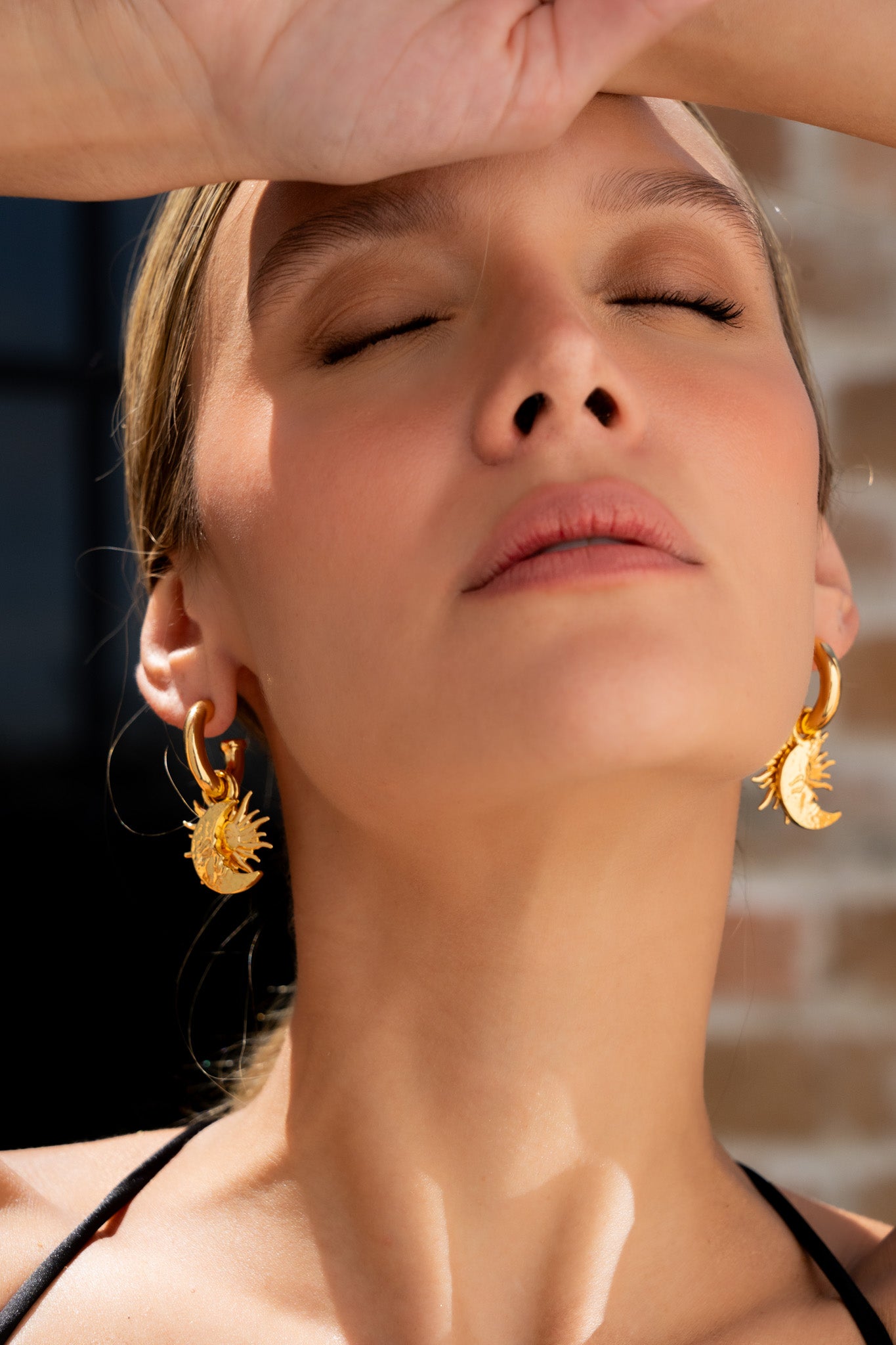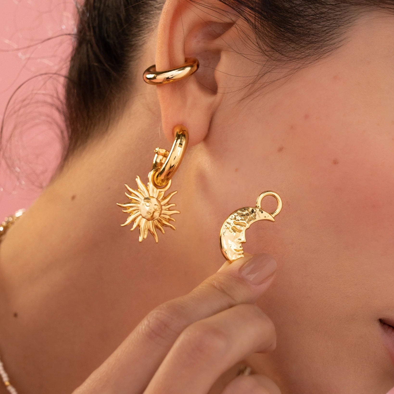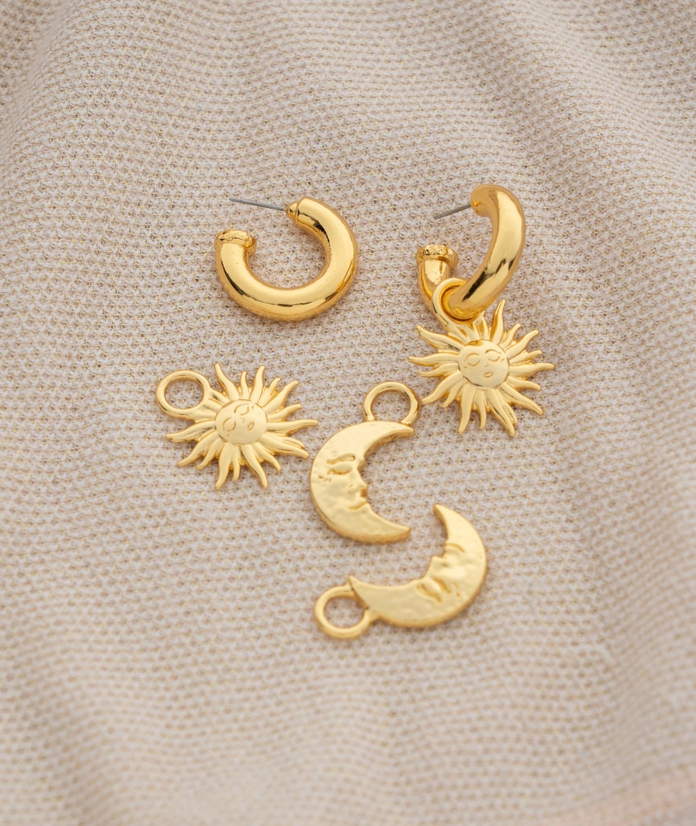 - Incluye: 1 par de candongas con 4 dijes de sol y luna intercambiables.