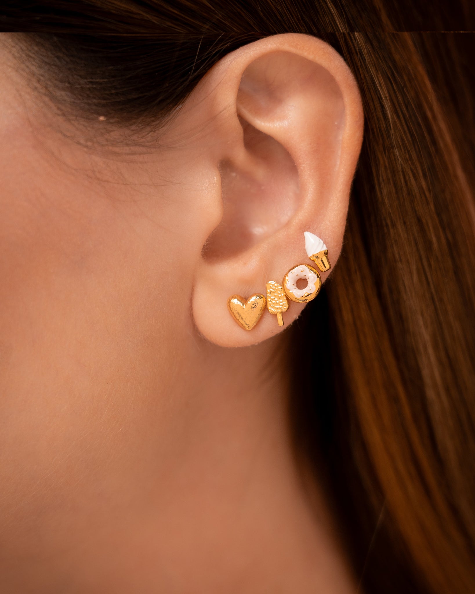 • Aretes elaborados Zamak (aleación de metales) con baño de oro de 24k.
