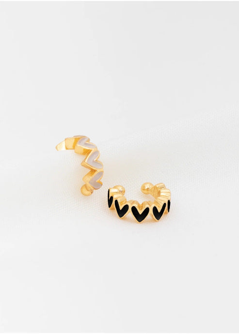 EARCUFF CORAZONES NUDE Y NEGRO