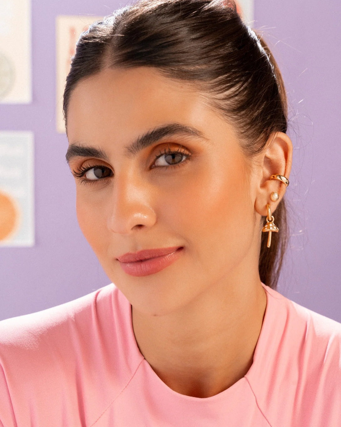 • Incluye: 1 par de candongas con dije de hongo, 1 par de topos y 1 earcuff.
