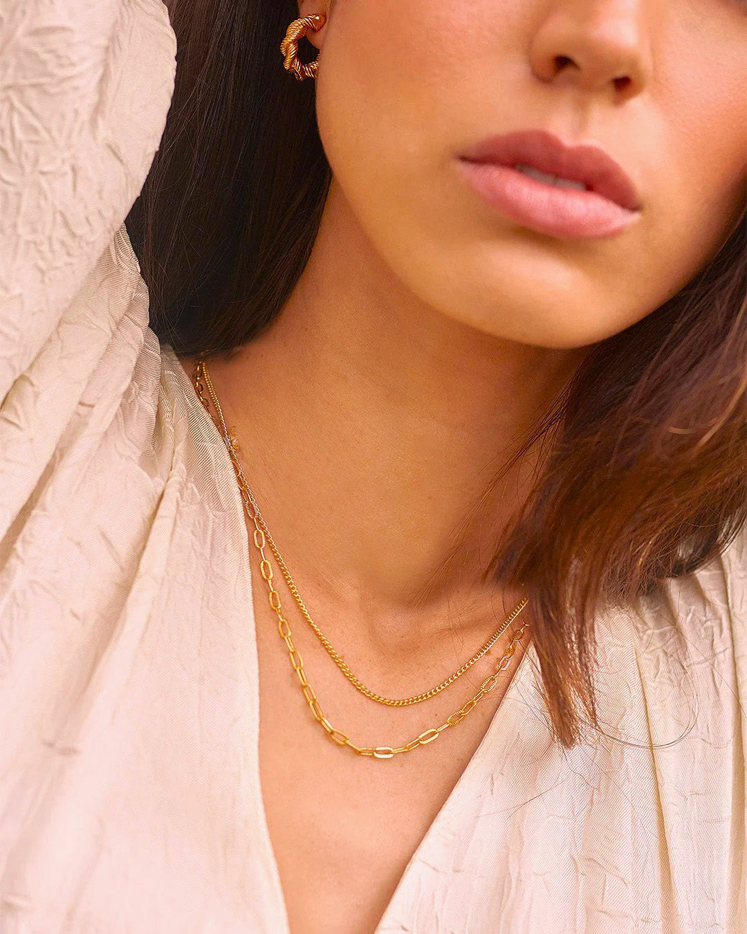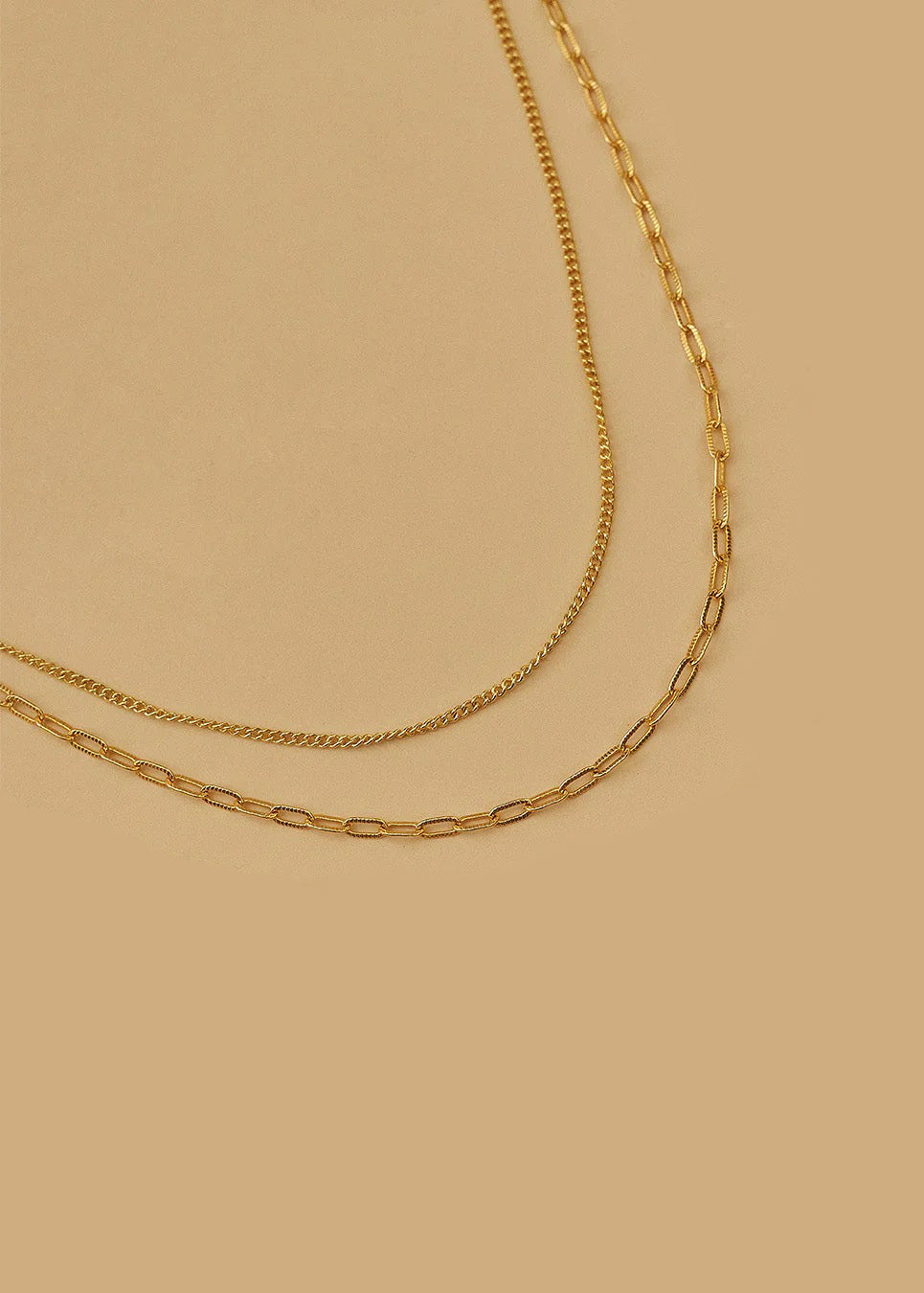 Incluye: Set de 2 cadenas en un broche, con baño de oro de 24k