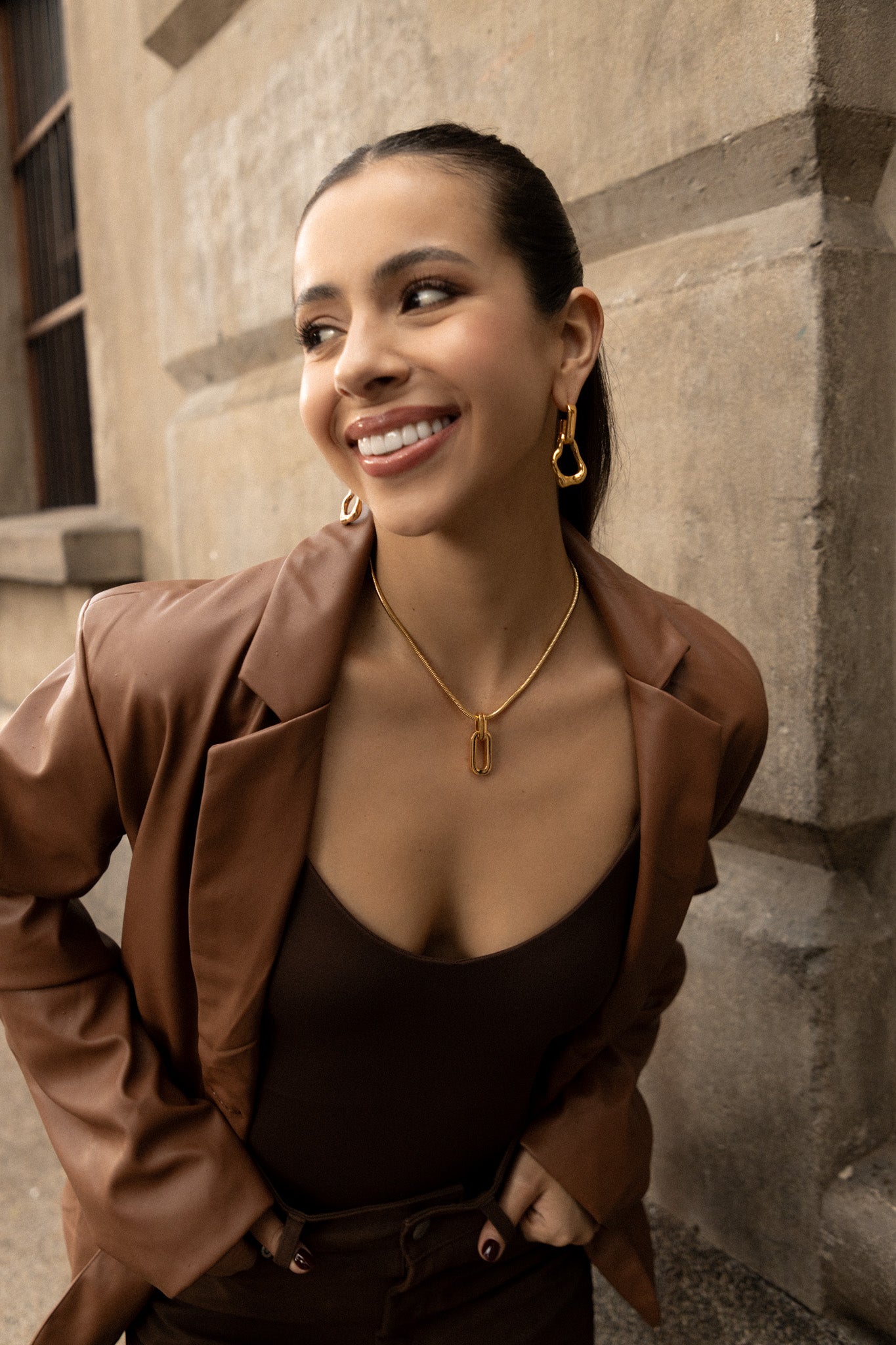 - Dijes del collar en Zamak (aleación de metales) con baño de oro de 24k.