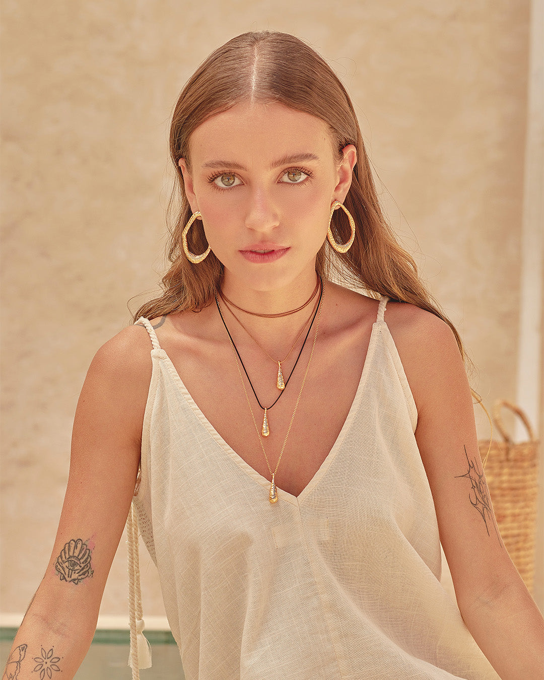 Materiales: En nuestros accesorios utilizamos aleaciones de metales como bronce, latón y estaño, con baños de oro 24k y plata, y los protegemos con una laca cataforética para garantizar una mayor resistencia al cambio.