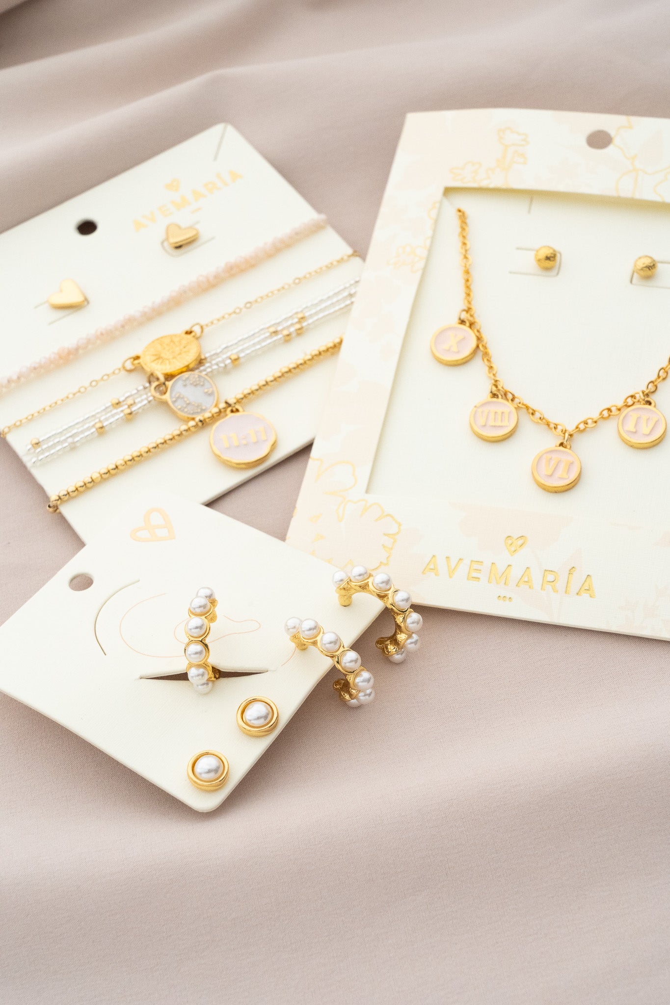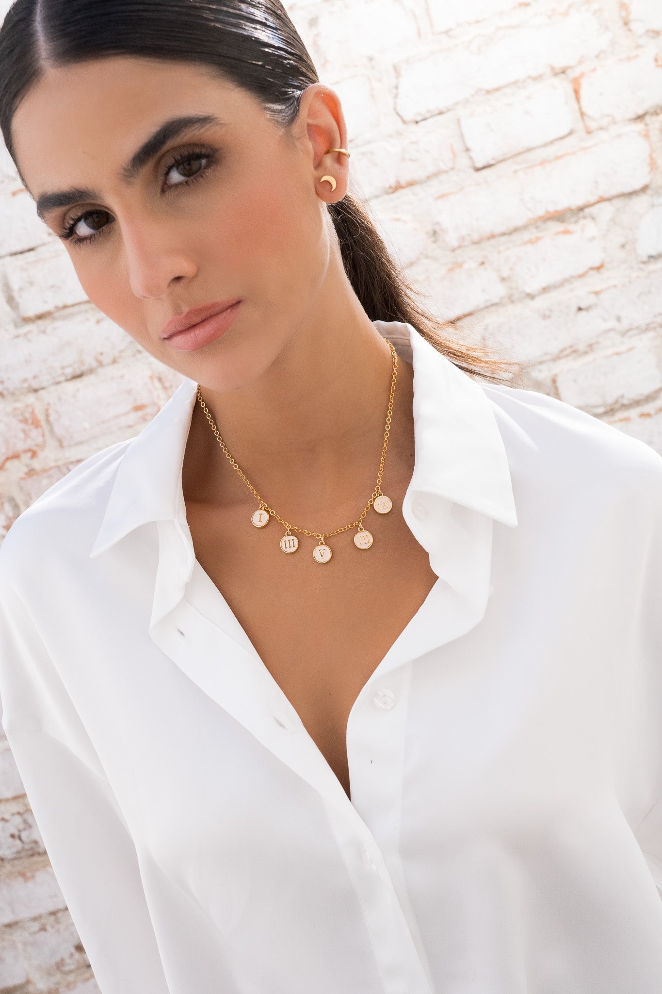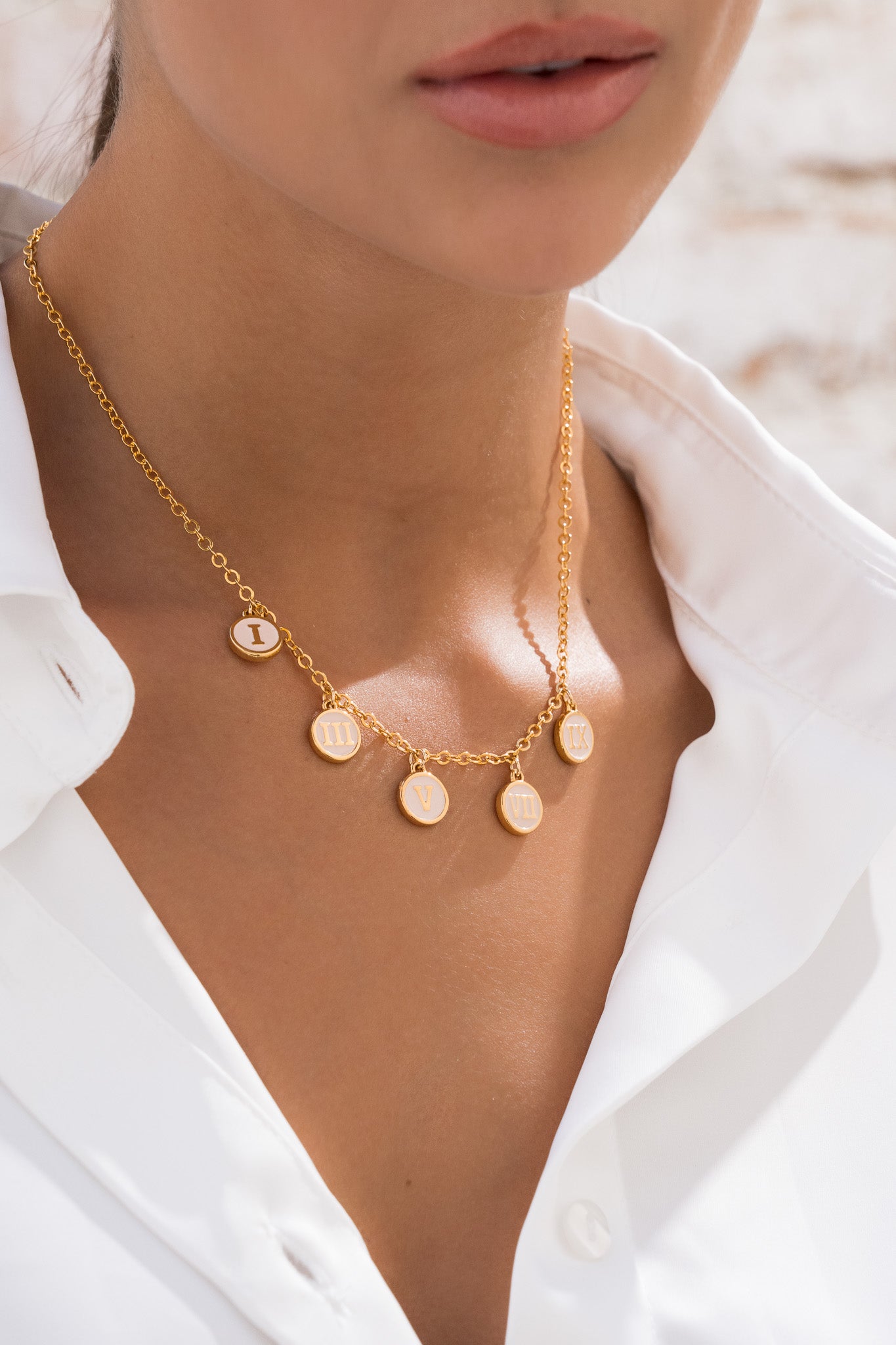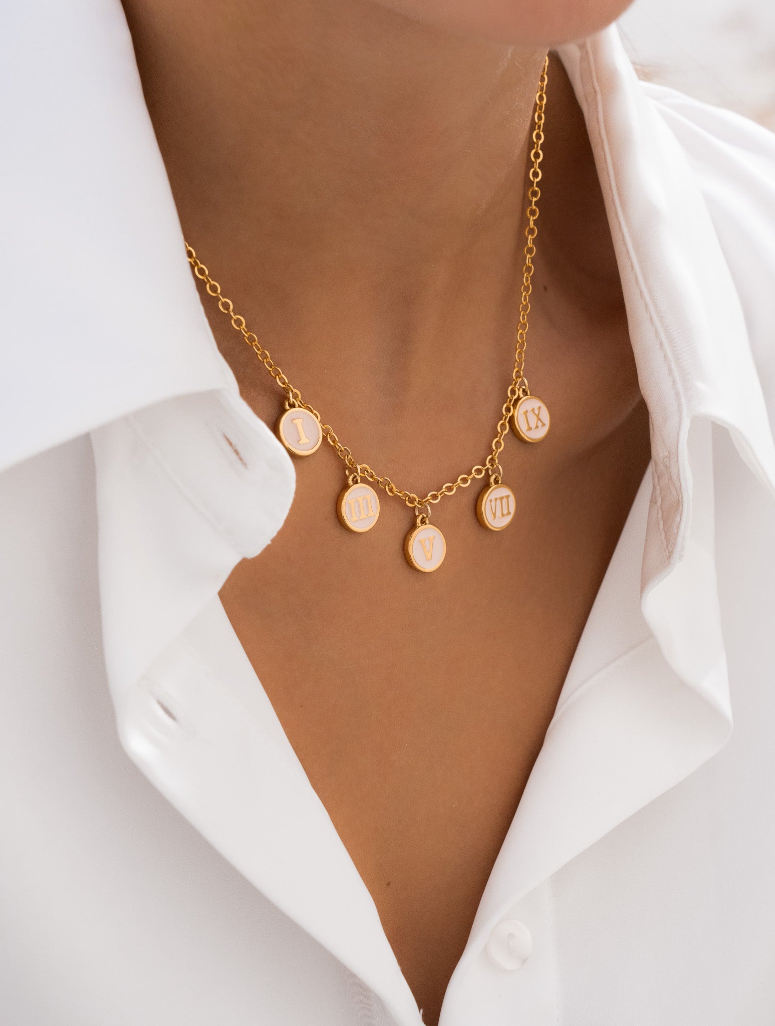 • Dijes del collar en Zamak (aleación de metales) con baño de oro de 24k.