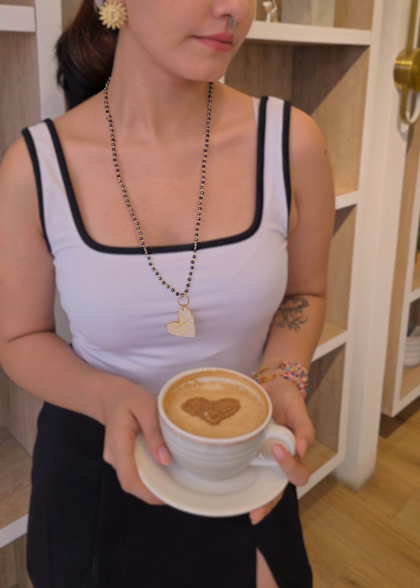 Incluye: 1 cadena larga en muranos , cuencas varias y dije de corazon.