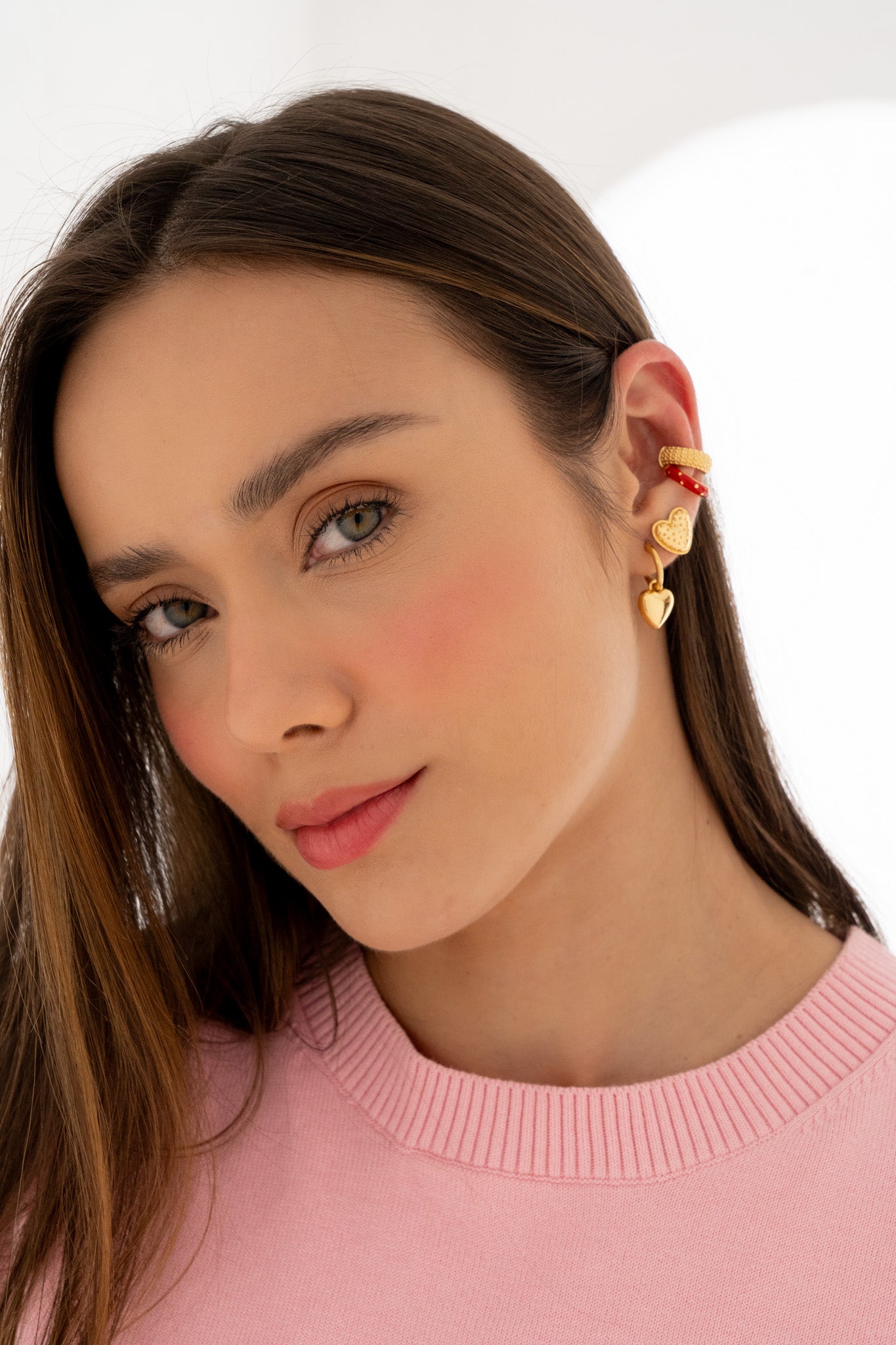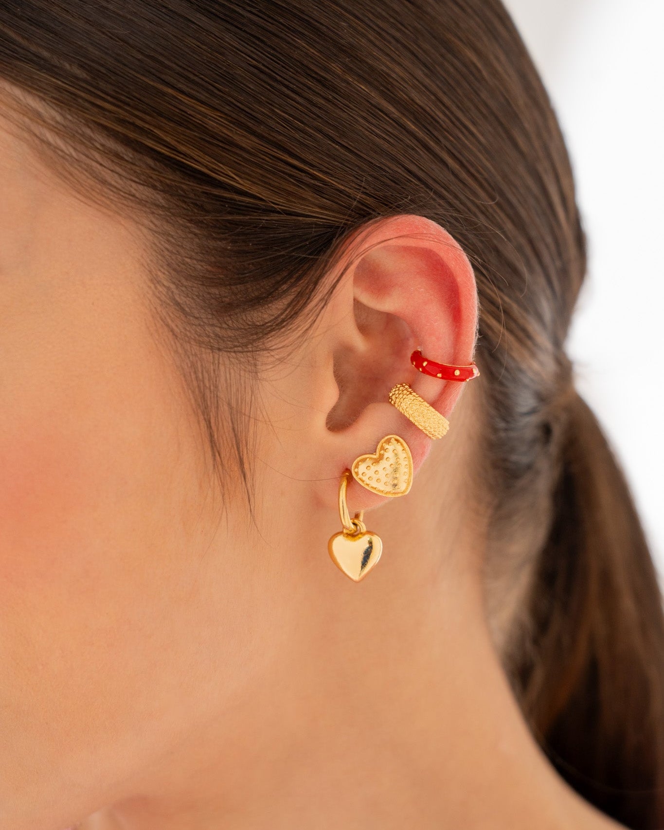 - Incluye: 1 par de candongas 2 en 1 corazón , 1 par de topos corazón y 2 earcuff.