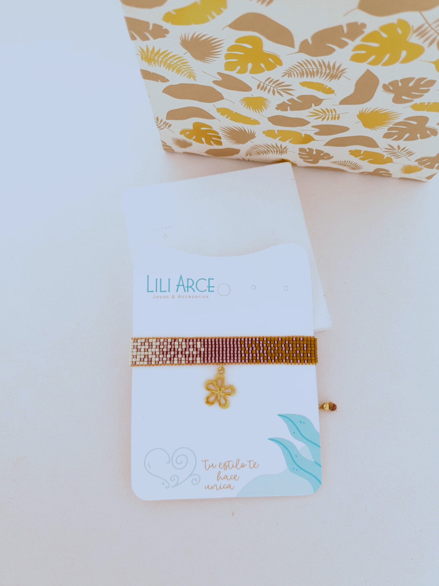 Pulsera tejida a mano en miyuki y dije con baño de oro.
