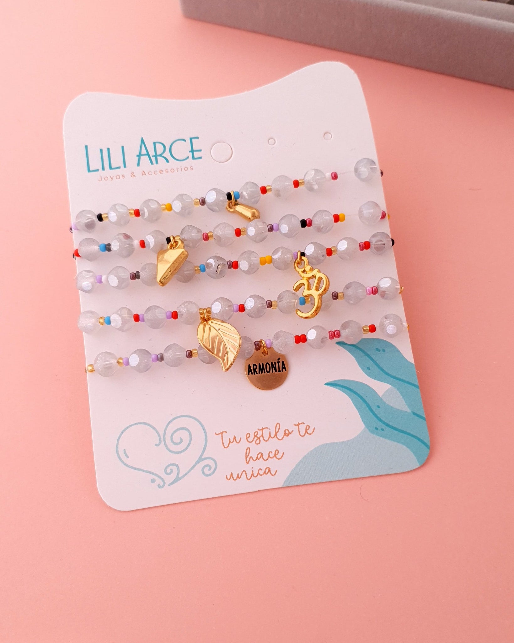 • Set de  4 Pulseras encauchadas con cuencas varias.