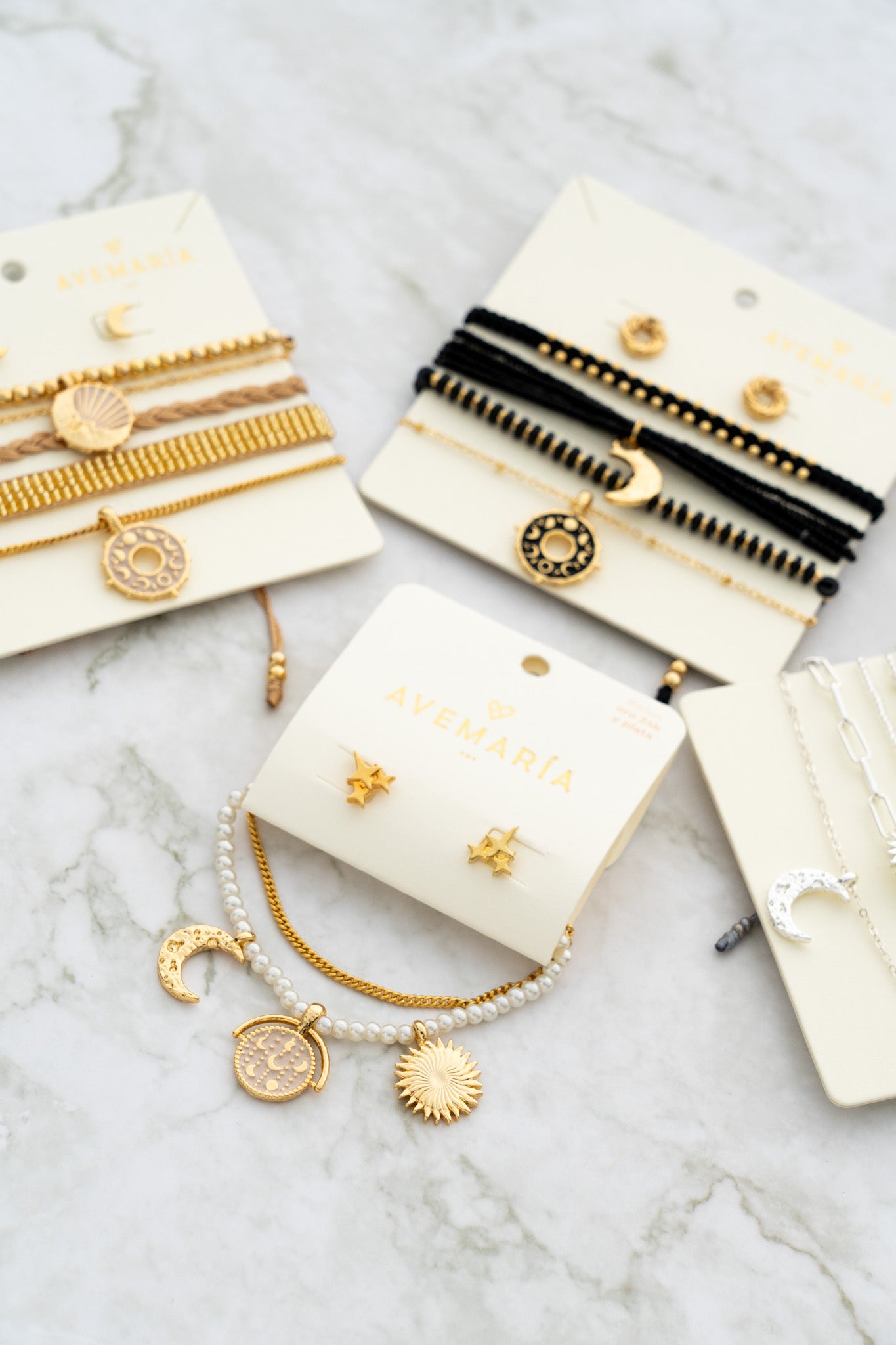 - Dijes de la pulsera en Zamak (aleación de metales) con baño de oro de 24k.