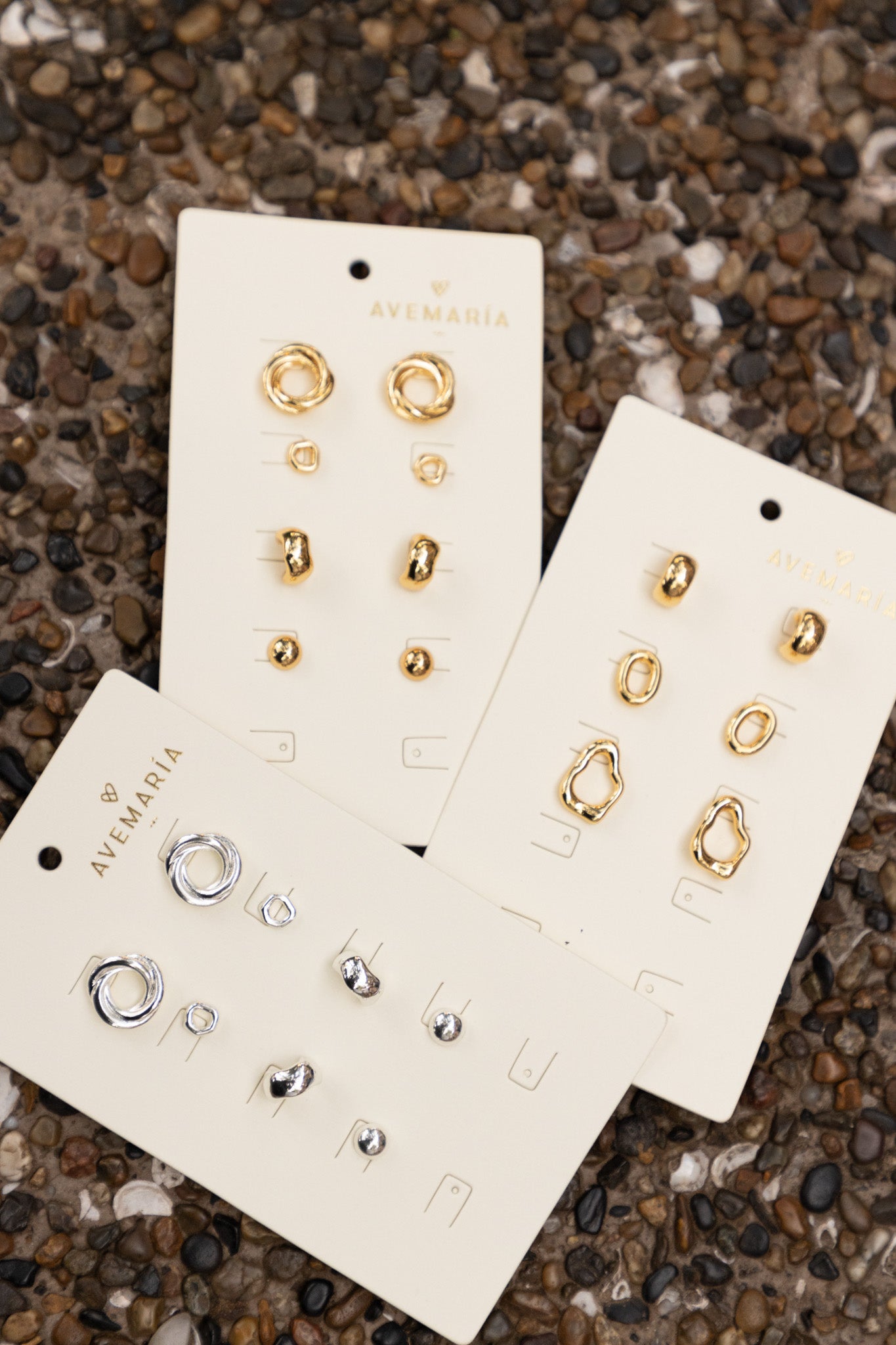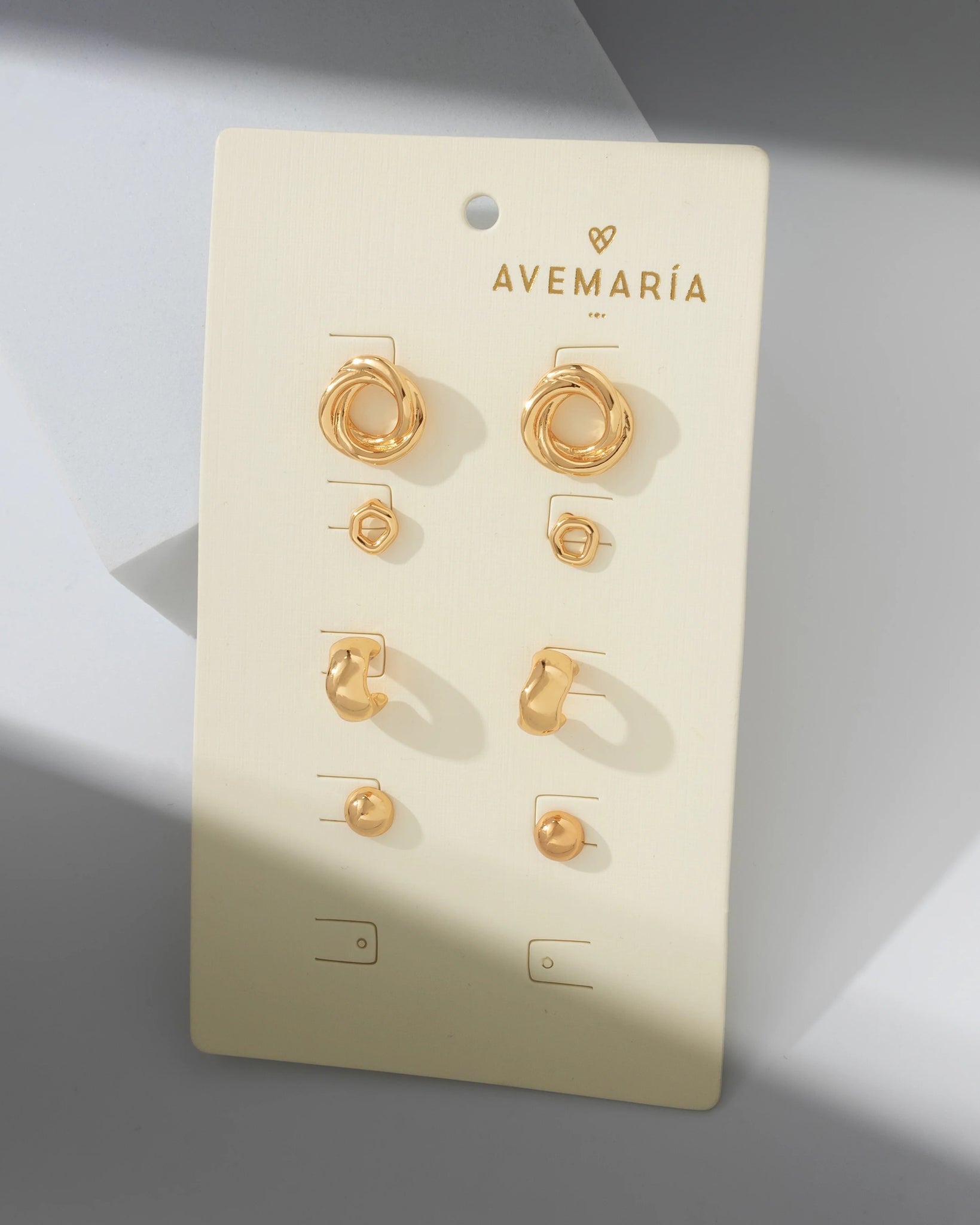 - Aretes elaborados Zamak (aleación de metales) con baño de oro de 24k.