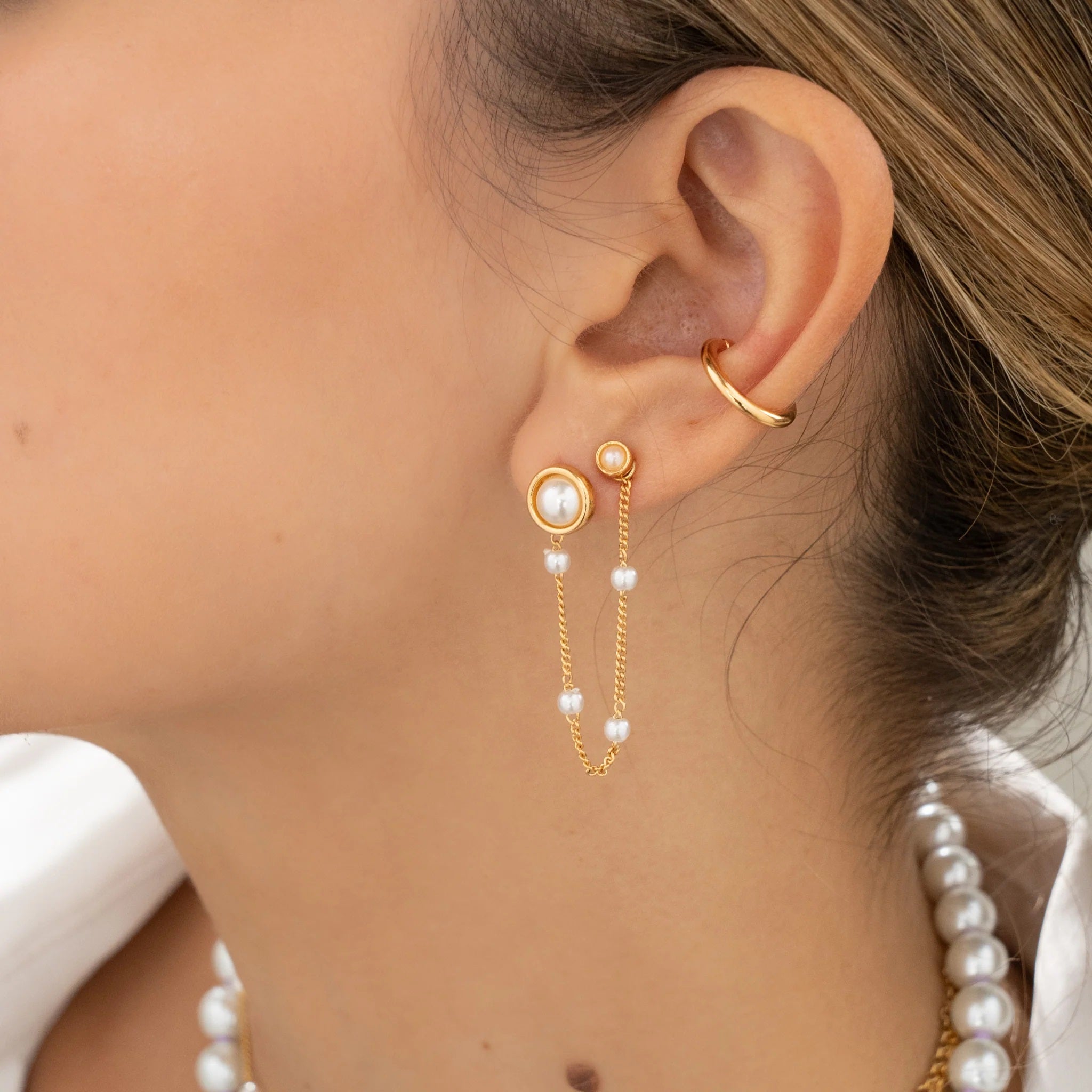 • Incluye: 1 earcuff, 1 par de topos mini perla, 1 par de topos perla y cadena.