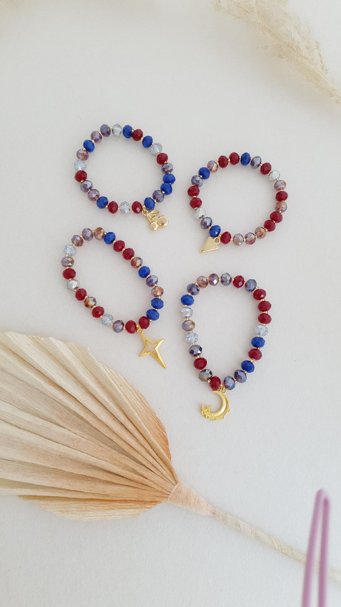 Set de 4 pulseras encauchadas con dijes (baño de oro)