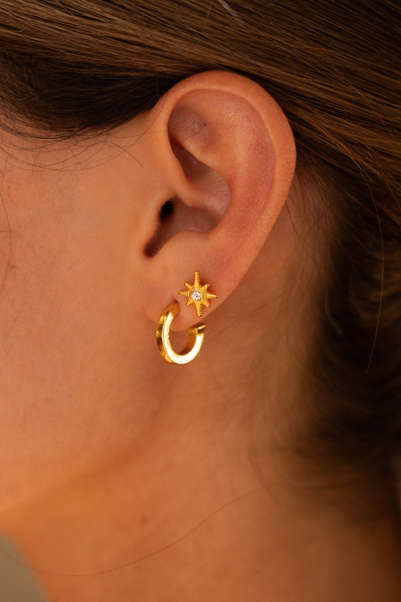 • Incluye: 1 par de topos estrella, 1 candongas doradas, 1 candongas plateadas.
