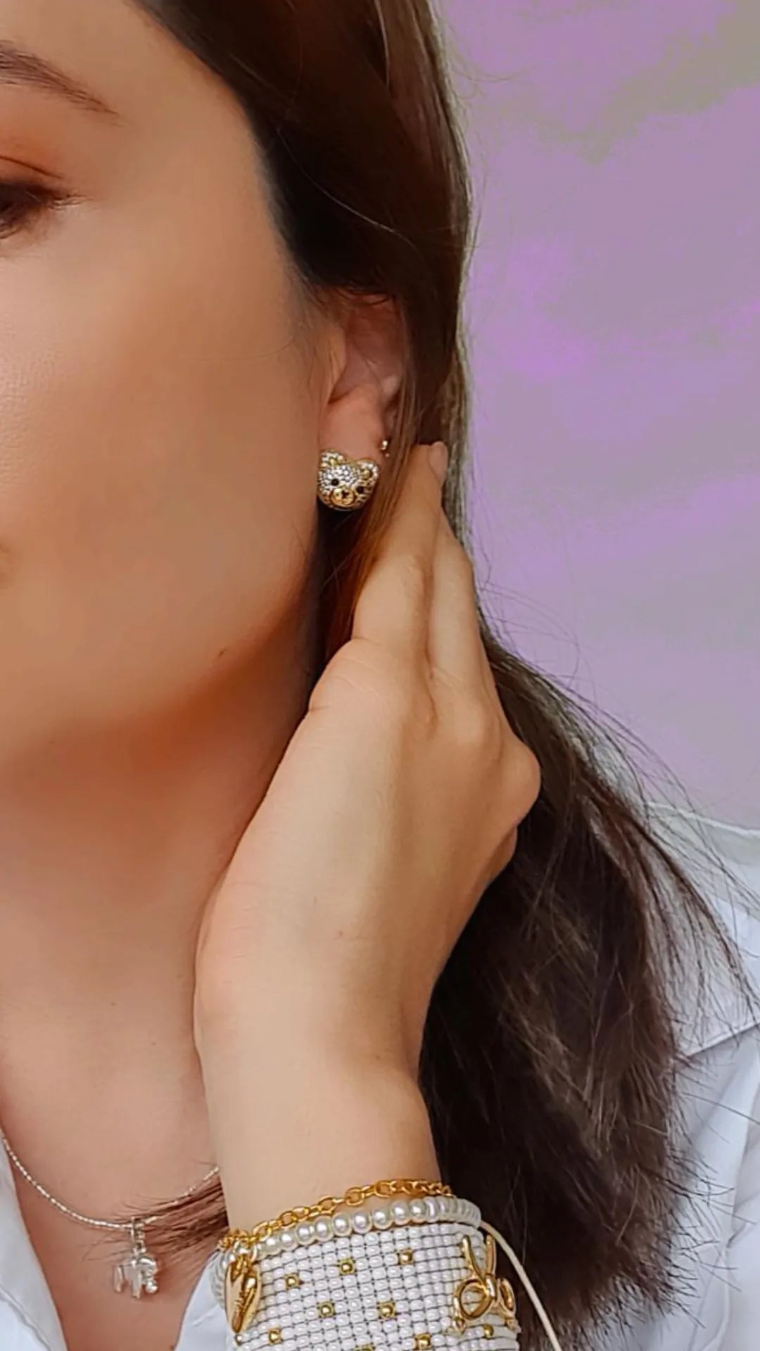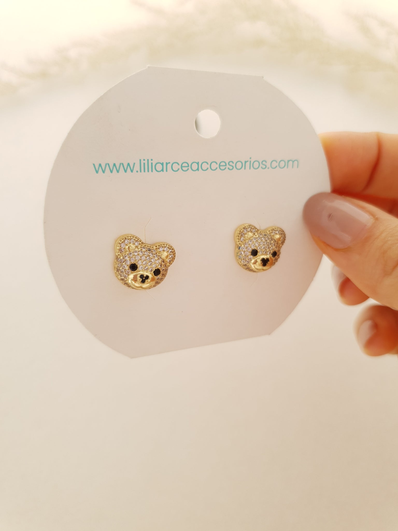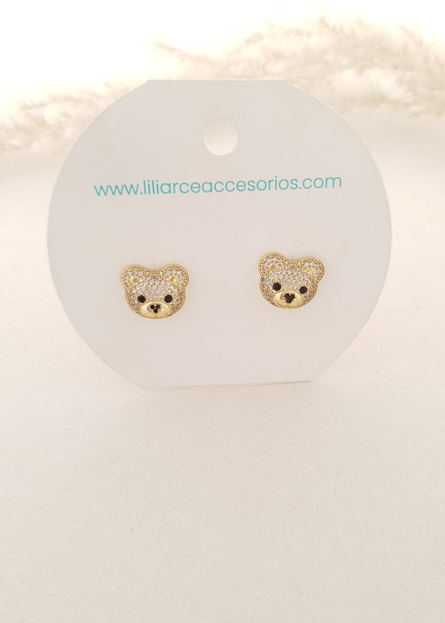 Incluye: Aretes tipo topo en forma de oso con cristales.